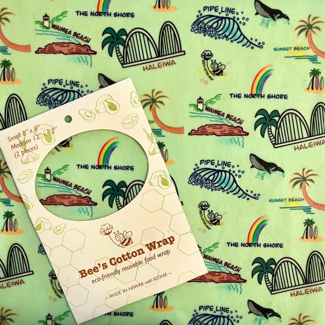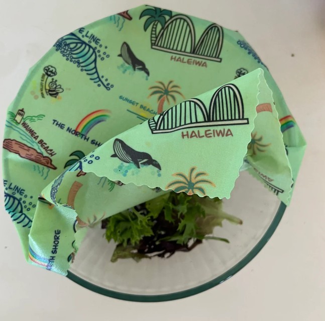 Made with GOTS Certified organic Cotton, Hawaiian beeswax, organic jojoba oil, and tree resin with ALOHA! These ingredients create a natural antibacterial beeswax cloth that helps to keep your foods fresh longer!