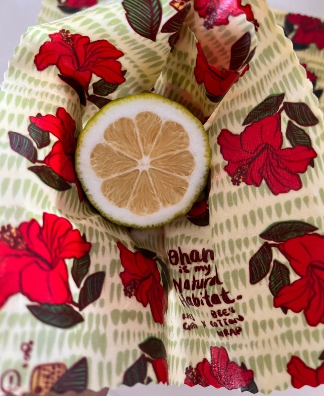 Made with GOTS-certified organic cotton, Hawaiian beeswax, organic jojoba oil, tree resin and lots of ALOHA! These ingredients create a natural antibacterial beeswax cloth that helps to keep food fresh and tasting good.